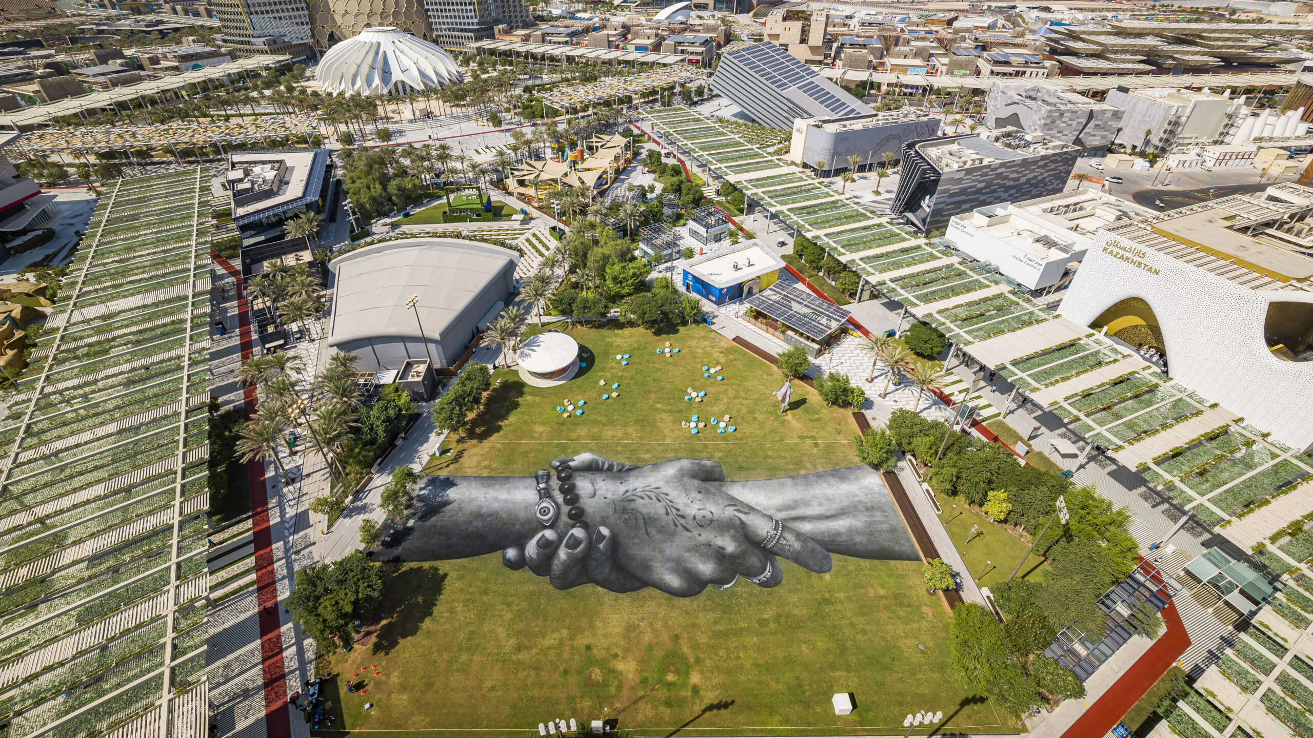 'Beyond Walls' land-art installation by Saype at Expo 2020 Dubai, United Arab Emirates