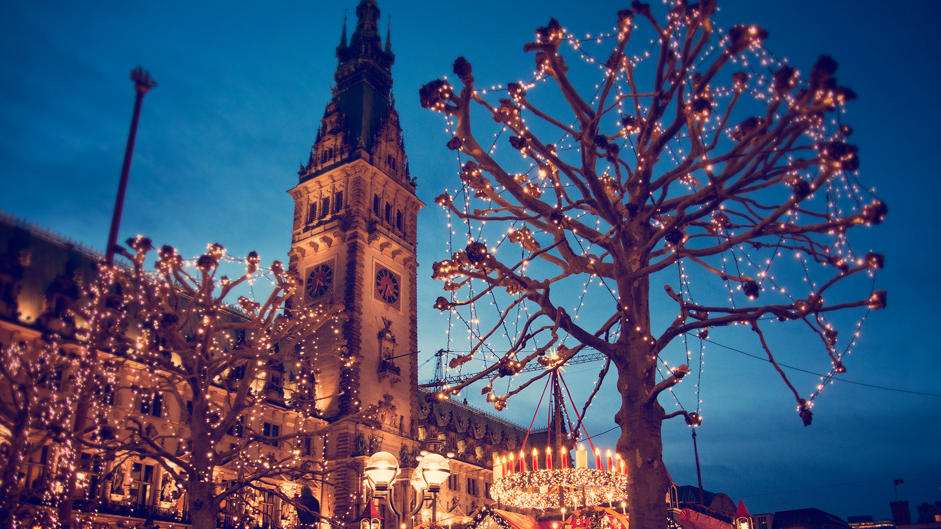 Christmas market at the Hamburg Rathaus Markt, Germany