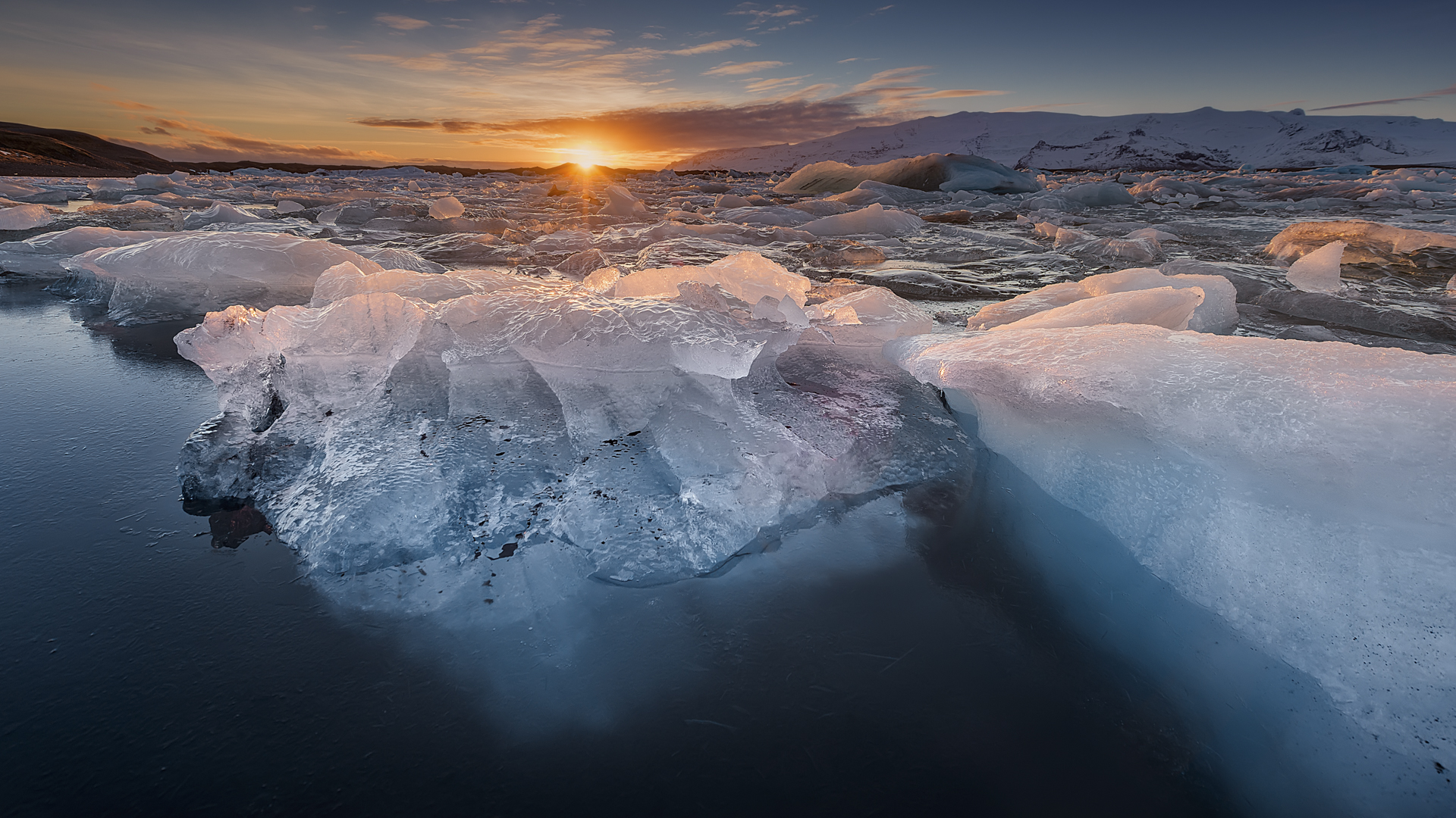 Ice on Fire – Sunset at Jökulsárlón Glacier Lagoon, Iceland