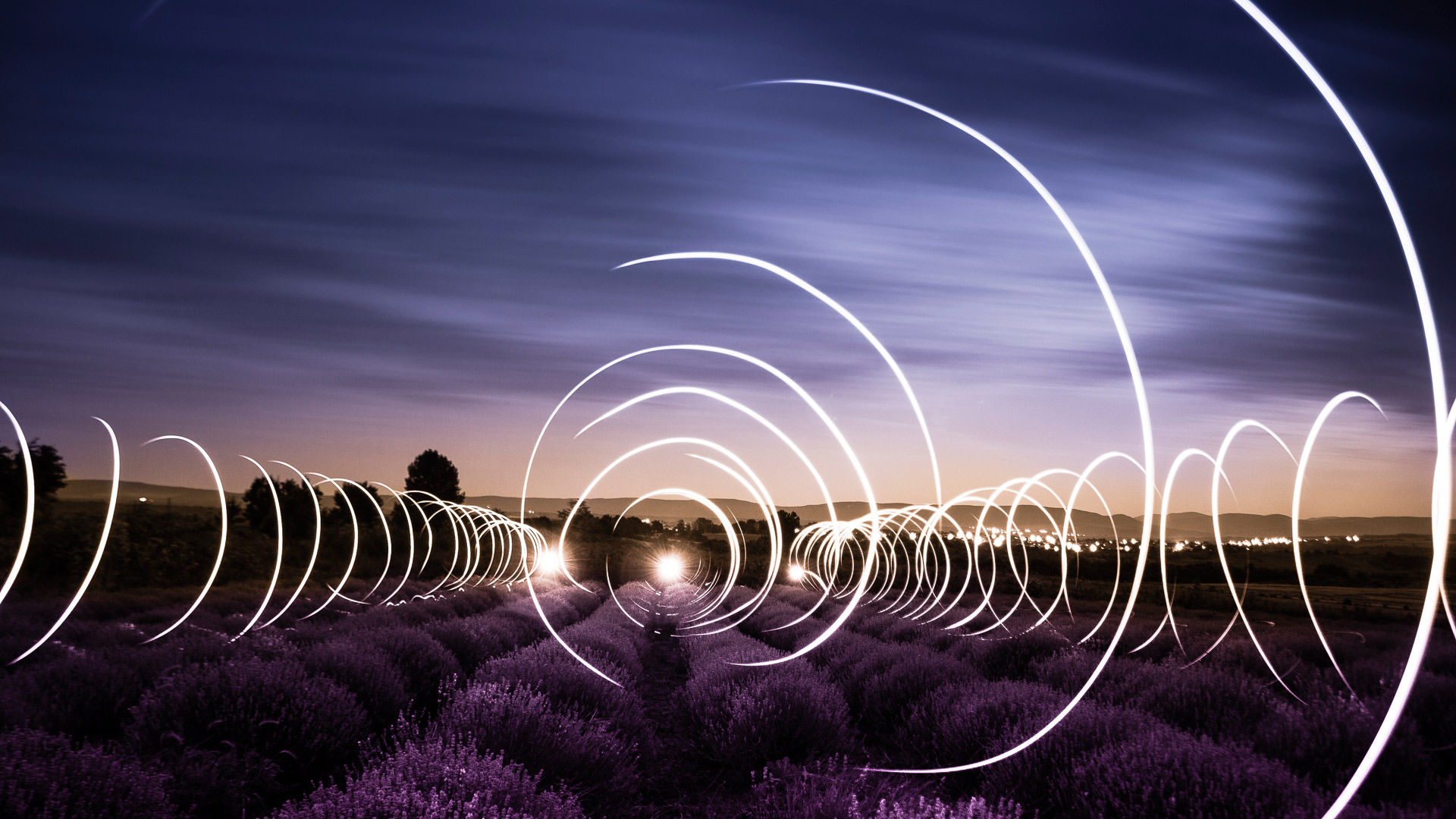 Light painting on lavender field at night, near Shumen, Bulgaria