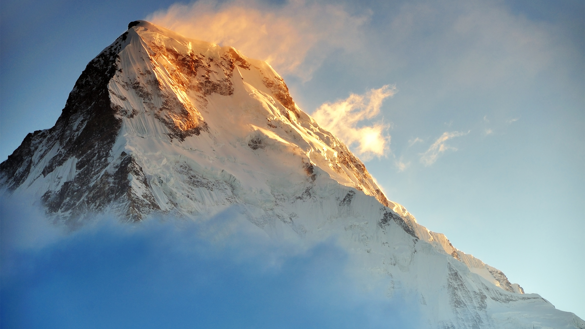 Sunrise light on Fish Tail or Machapuchare Mountain, Annapurna region, Nepal